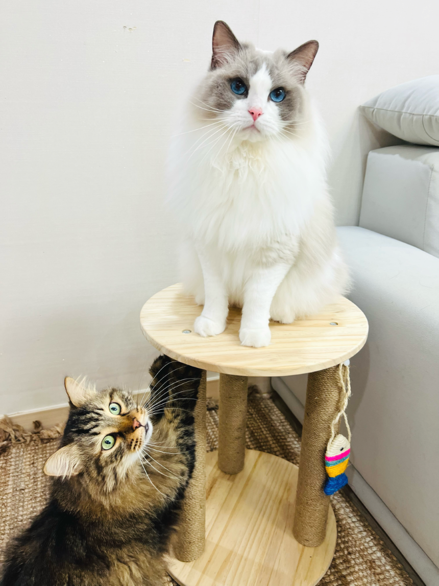 요게 신상 물꼬기 캣타워다냥~ 리한테 크기도 딱이다냥!