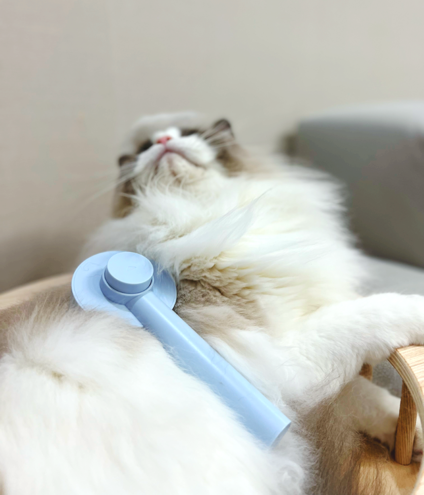 그래도 에토펫 뽀송 원터치 브러쉬덕분에 리가 예쁘고 빠르게 빗질을 완료했답니다:3